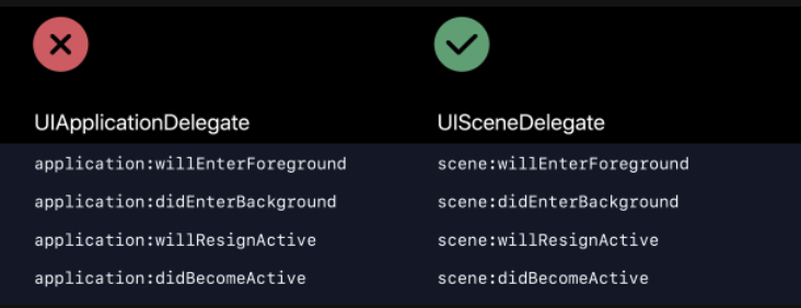 iOS 13 이후 AppDelegate → SceneDelegate 메소드 변화