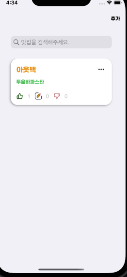 사용하다보니 Snapkit이라는 코드를 더 간결하게 해주는 라이브러리를 알게되어 코드로 UI를 구현하는데 속도가 좀더 붙었습니다.