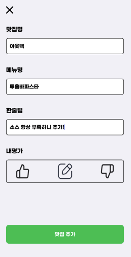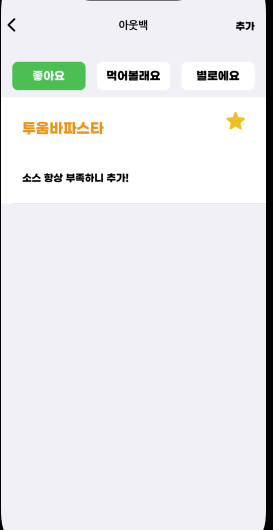 메뉴별로 3가지 타입이 있는데 (좋아요, 먹어볼래요, 별로에요)