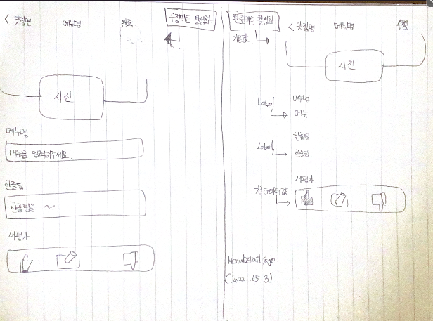 하루에도 구상이 몇번씩 바뀌고 기획과 디자인이 개발로 이어졌을때 어려움이 있진 않을지 고려해야 했고, 막상 고려한다음 개발로 이어져도 어려움은 있었습니다. 그렇게 생각만 하다가 말기를 여러번 반복했던것 같습니다. 그중에서도 괜찮았던 아이디어는 시간이 지나면 까먹었고, 결국 내용을 (발그림이지만) 그려나가면서 버전관리를 나름대로 하게 되니 직관적으로 볼 수 있게 되면서 작업에 갈피를 잡을 수 있게 되었습니다.