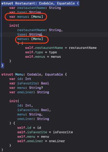 (remove(at:) 메소드로 적절한 index를 찾아야하는데 filter로 걸러낸 index와 menus의 전체 index를 일치 시키는데 어려움이 있었습니다.)