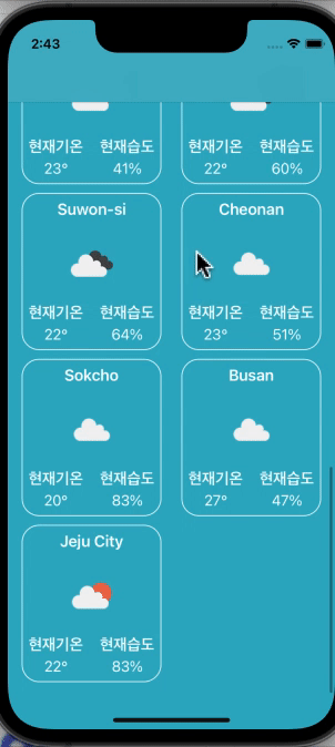 기존에 있던 날씨 이미지 → 새로 받아오는 이미지로 뒤늦게 바뀌는게 보이시나요?
