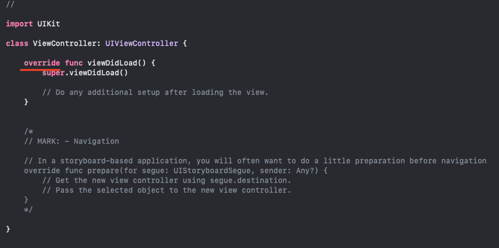 뷰 컨트롤러 생성하고 여러 동영상 강의를 보면서 override가 뭔지 몰라서 그냥 넘어갔는데