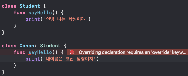 여기에 Student 클래스를 상속 받아서 Conan 이 인사하는 하위클래스를 만들어볼게요 .