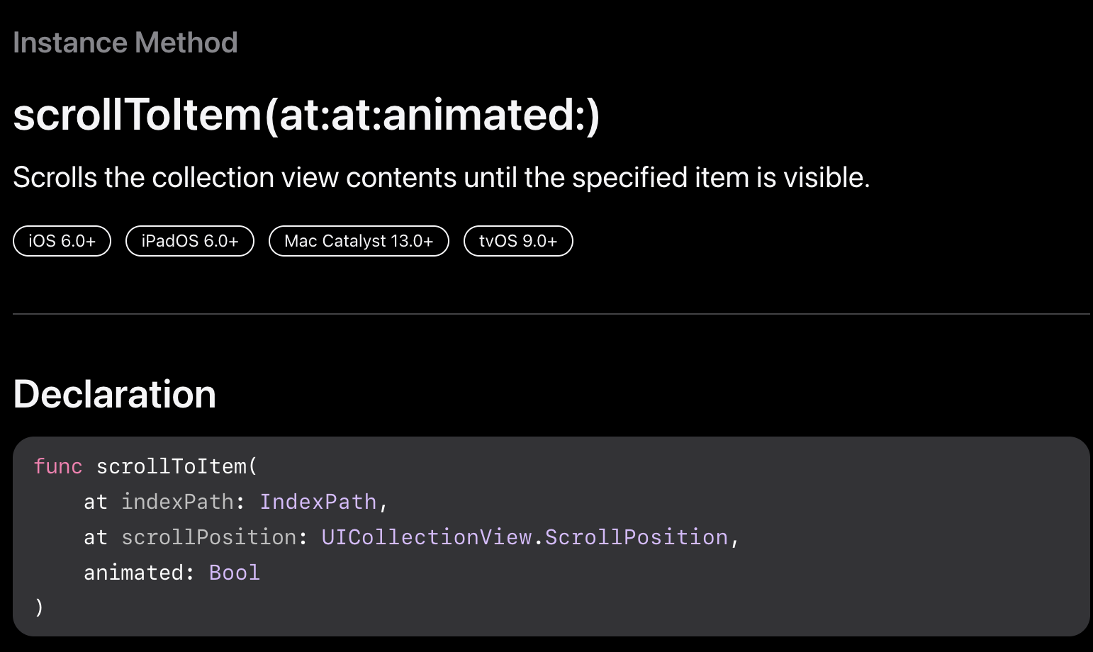 CollectionView에서는 아래의 인스턴스 메서드를 사용하면 돼요.