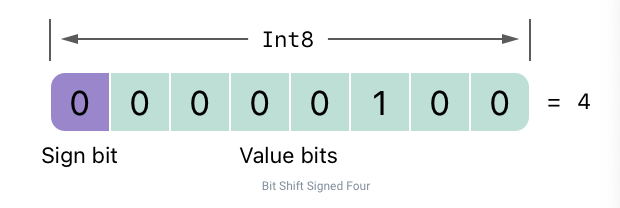 let shiftBits: UInt8 = 4 // 00000100 in binary