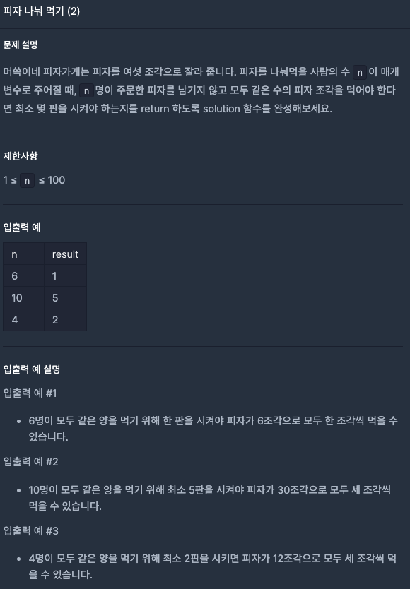 - 6 % n명의 나머지값이 0이 아니면 피자판수를 늘려준다.