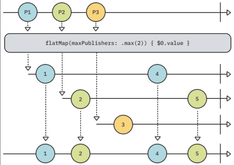 여러개의 publisher upstream -> single downstream으로 변환 해줍니다.