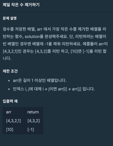 - arr 요소 하나씩 비교하면서 min이랑 같지 않은것만 출력