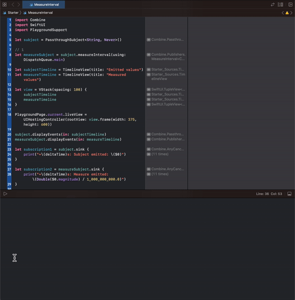 let subjectTimeline = TimelineView(title: "Emitted values")