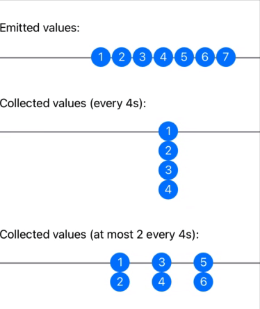 let collectedTimeline2 = TimelineView(title: "Collected values (at most \(collectMaxCount) every \(collectTimeStride)s):")