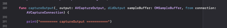AVCaptureVideoDataOutputSampleBufferDelegate를 채택후 captureOutput 메서드에서 print를 찍어보면,