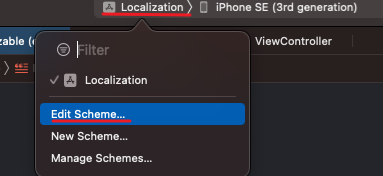 Xcode에서 Scheme설정을 해주면 쉽게 언어 변경을 할 수 있습니다.