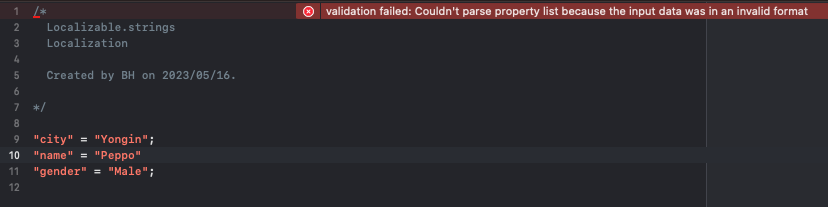 생성하면 아래처럼 Localizable.strings 파일이 생깁니다.