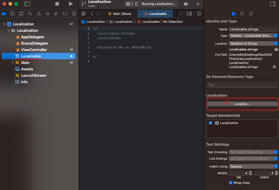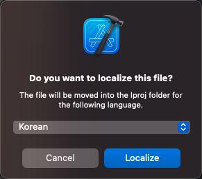 클릭하고 'Localize...' 버튼을 눌러주세요.