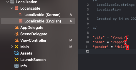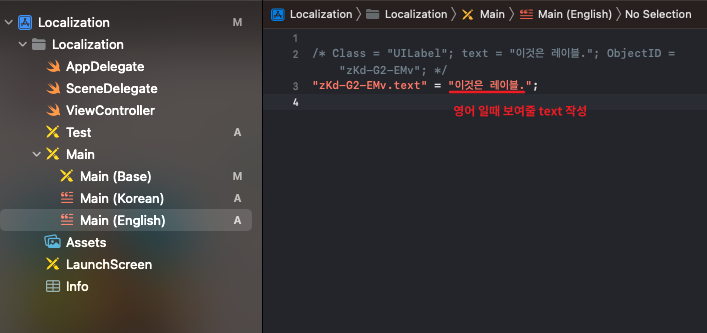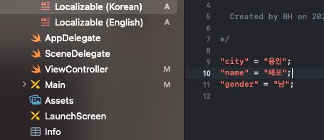 그럼 Localizable에 언어별로 설정이 되는데요.