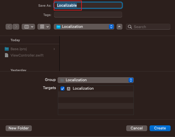 저장 이름은 Localizable 그대로 두시구요