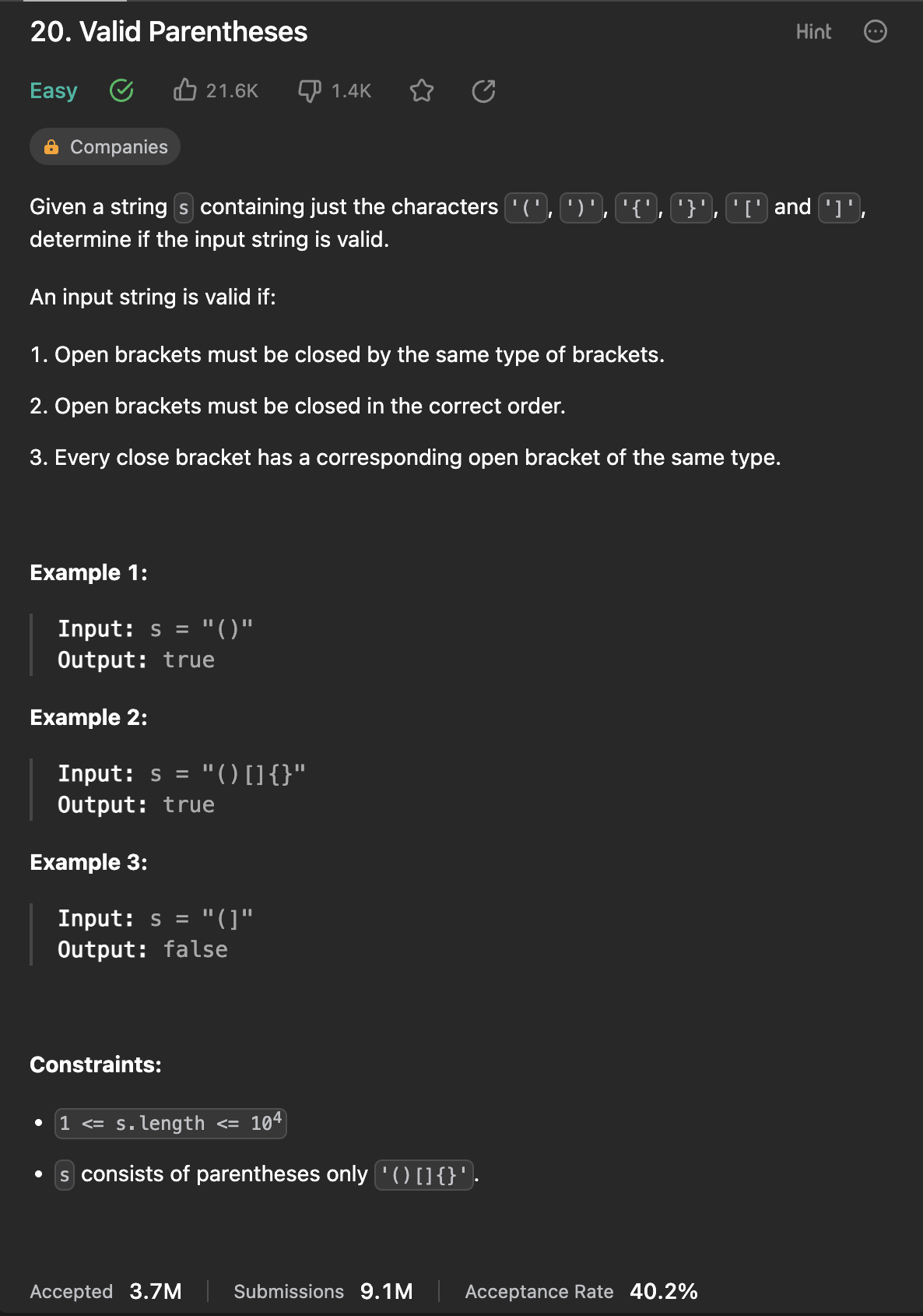 - stack이 다 비어있으면 괄호 짝이 다 맞고, 다 닫을 수 있으니 true 리턴
