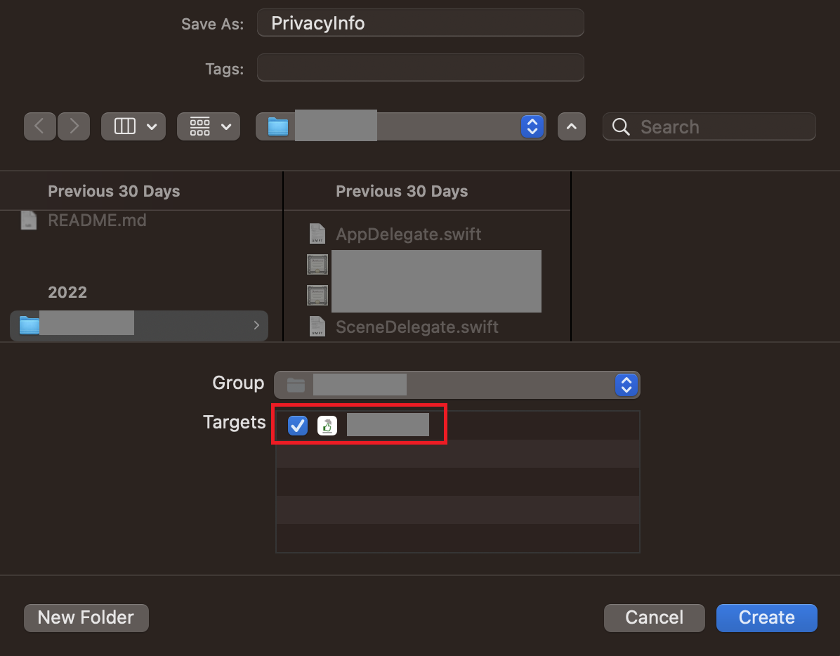 먼저 새 파일 (cmd + n)에서 App Privacy 파일을 추가해주시고