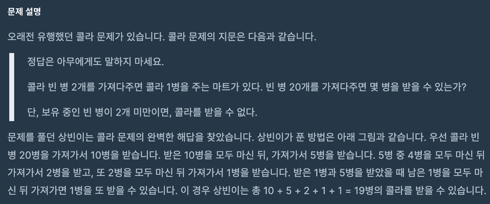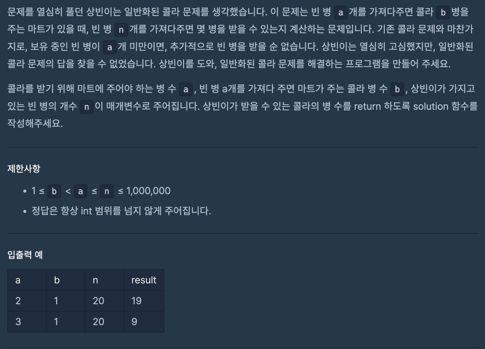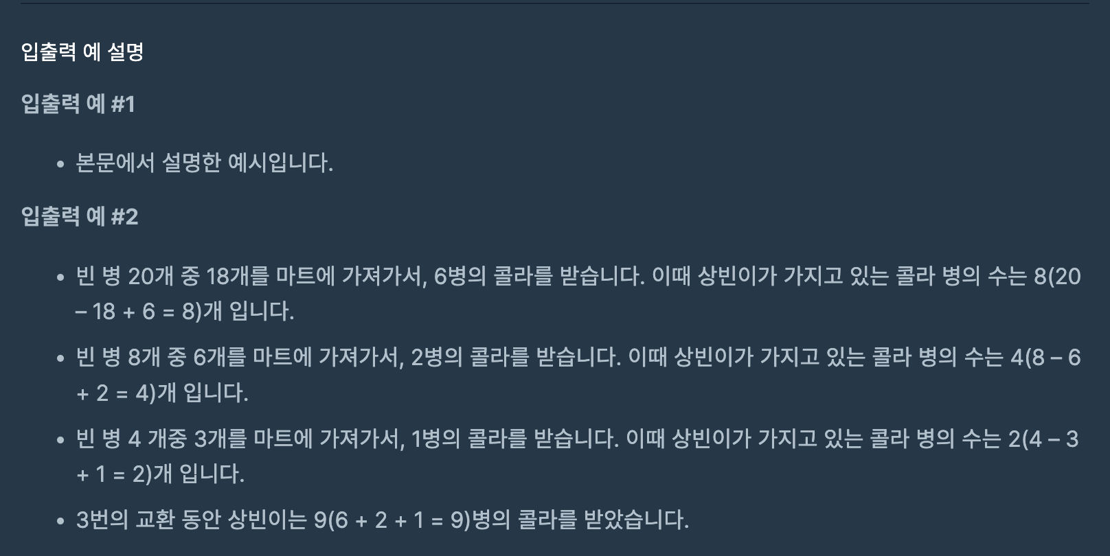 a갯수만큼 빈병을 가져다주면 b갯수만큼 돌려 받는다는걸