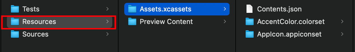Project 파일 세팅했을때 Sources/** 로 했기때문에 Sources 폴더내부에 알아서 정리가 되는 모습입니다~!