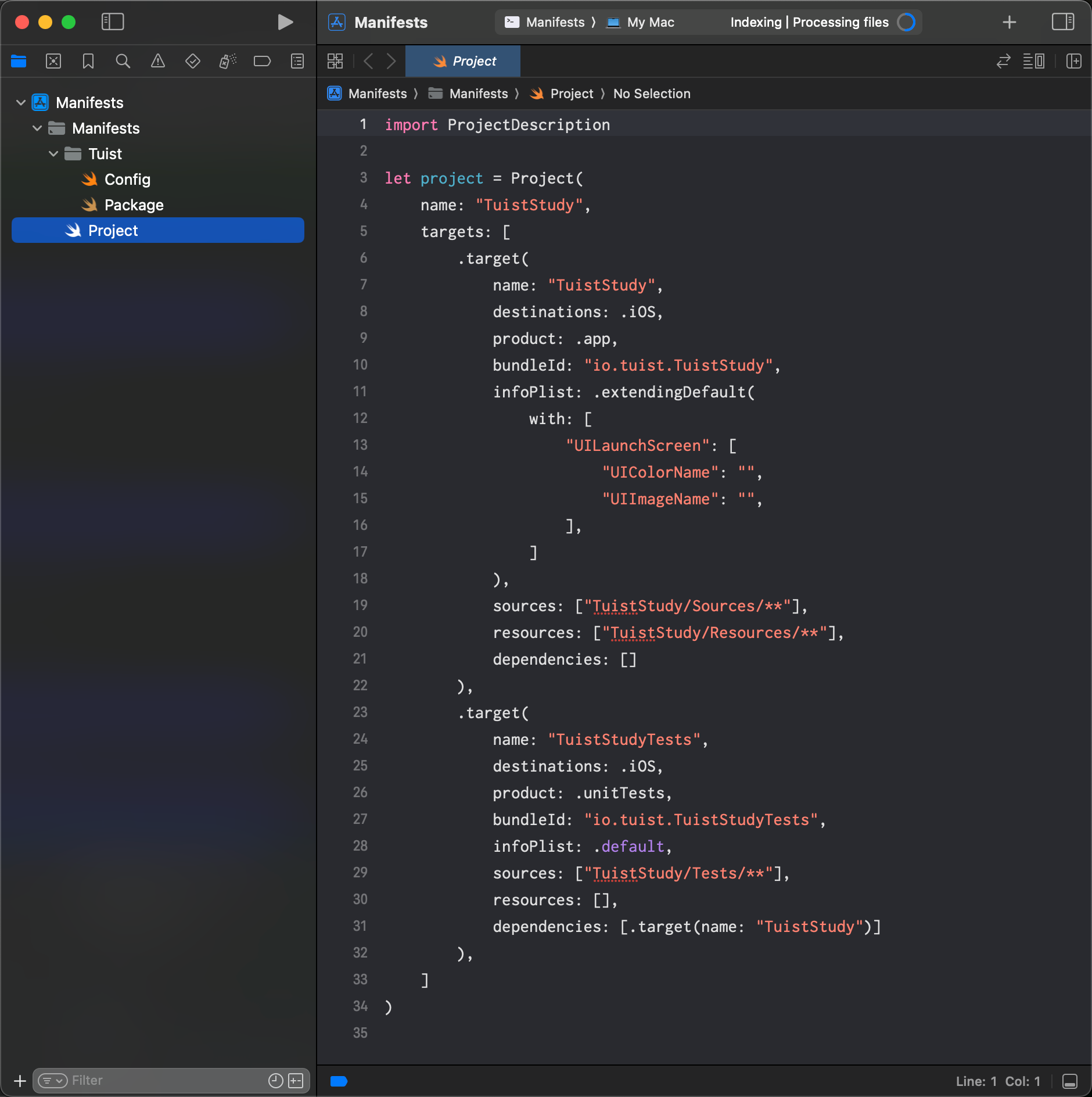 그럼 Manifests가 뜨는데 Project.swift를 열어줍시다