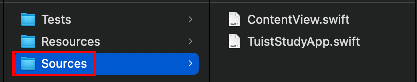 sources: ["TuistStudy/Source/**"], // source 디렉터리에 있는 모든 source 파일을 지정 (** = 와일드 카드 패턴 → 하위 모든 경로의 파일들 포함)