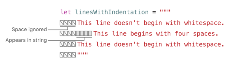 1. 여러줄 문자열을 사용하여 줄바꿈을 하고싶으면 백슬래쉬 ( \ )를 사용합니다. (playground에서 안됨..) 확인이 필요할것 같다.