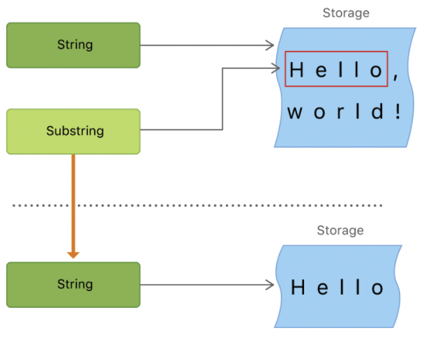 만약 부분 문자열을 오랜기간 또는 영구적으로 사용한다면 문자열 인스턴스로 바꿔 사용하는게 좋습니다.