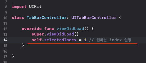 앱 실행할때 탭이 두번째걸 먼저 시작되게 하고싶은데