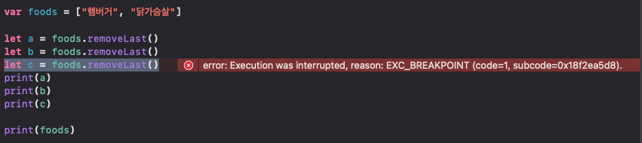 이상태에서 removeLast()를 한번 더 하게 되면?