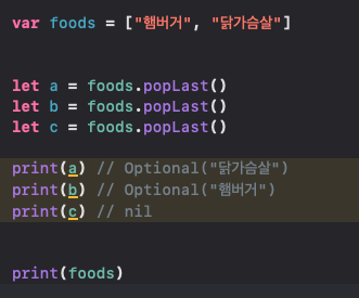 if let a = foods.popLast() {