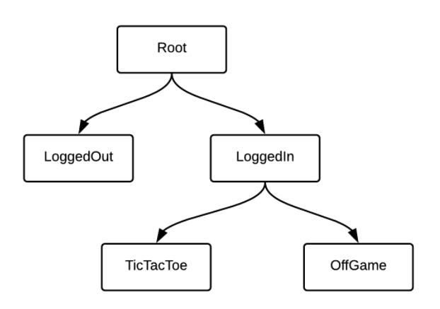 LoggedOut이 Root 에 login action을 알려야할거고, 그 다음엔 root 라우터가 LoggedOut 에서 LoggedIn 전환을 조절할 겁니다.