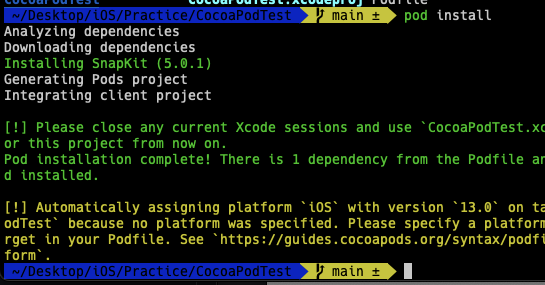 프로젝트 내 CocoaPods 사용