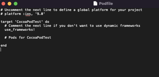 빨간줄 쳐놓은 부분을 Podfile 안에 입력해주신후 저장 (cmd + s)